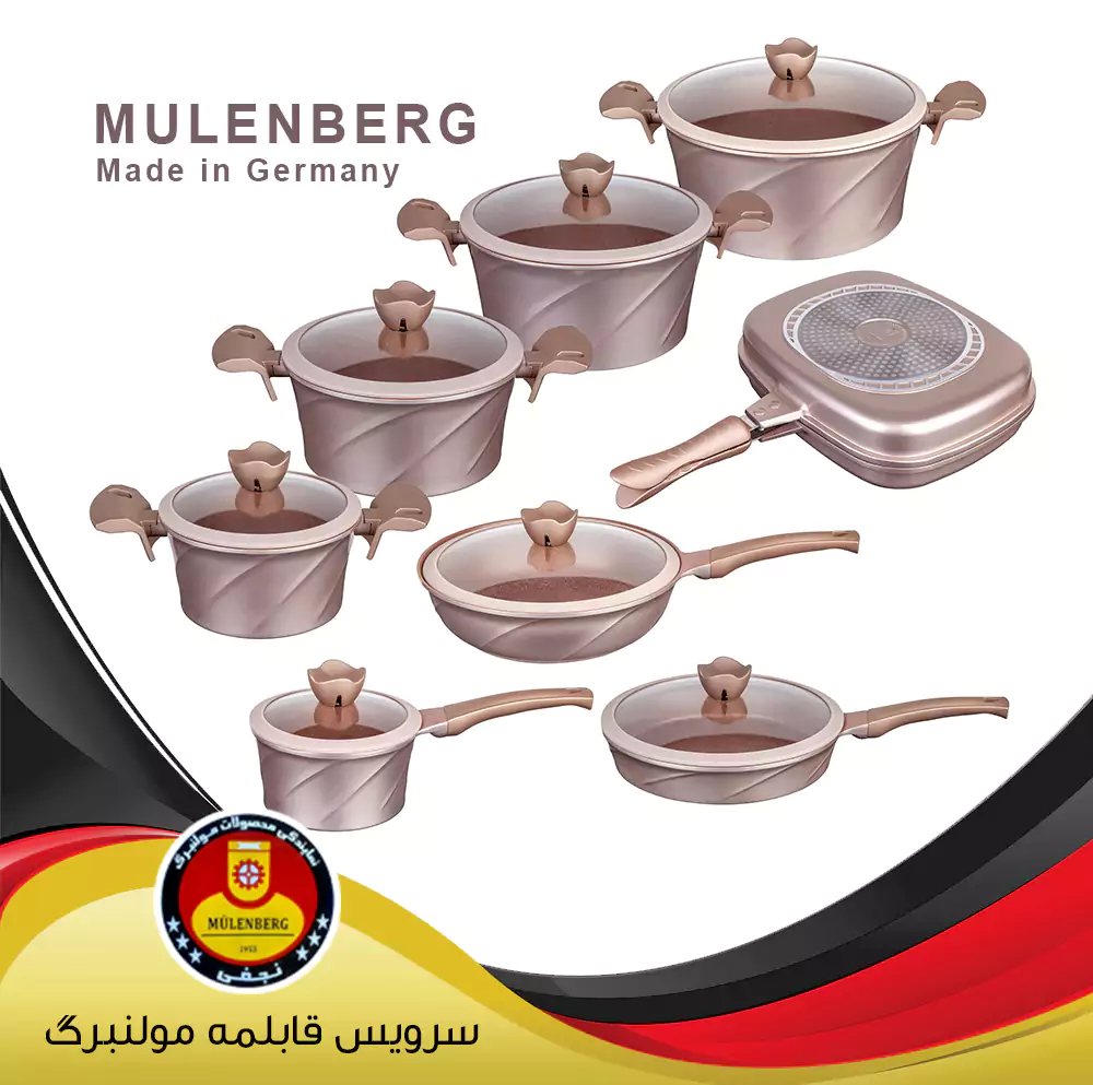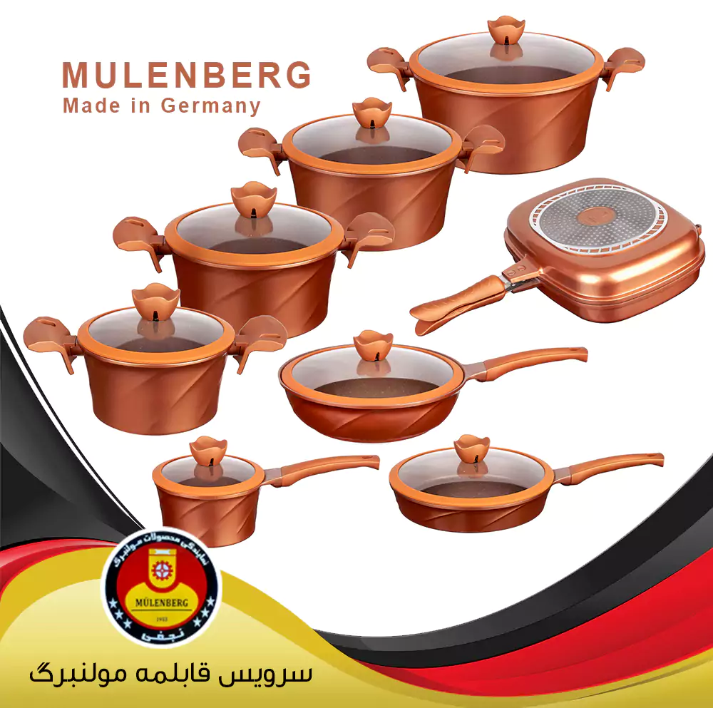 سرویس قابلمه مولنبرگ محصول کشور آلمان و با بهترین متریال روز دنیا تولید می گردد. مولنبرگ ، برند مطرح سال 2023 آلمان بوده و بهترین متخصصین آلمانی در تولید آن نقش دارند. شما می توانید محصولات مولنبرگ آلمان را از طریق فروشگاه ما خریداری نمایید. مولنبرگ آلمان فقط از طریق این فروشگاه عرضه شده و نماینده دیگری در ایران ندارد.